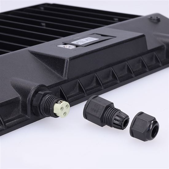 Krytie IP65 a vodeodolný konektor umožňujú vonkajšie použitie aj v náročných podmienkach. Reflektor je vybavený LED čipmi so životnosťou 25 000 hodín a poskytuje široký svetelný kužeľ 120 °, ideálny pre rovnomerné nasvietenie plochy. Rozmery činia 320 × 230 × 30 mm, telo je z odolného hliníka a elegantnej čiernej farby. Tento reflektor je robustné, flexibilné a efektívne riešenie pre profesionálne nasadenie vo vonkajších priestoroch.