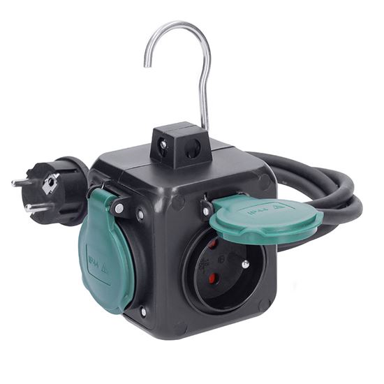 • 3 zásuvky 10A 230V~, detské poistky a IP44 krytky proti prachu a vlhkosti