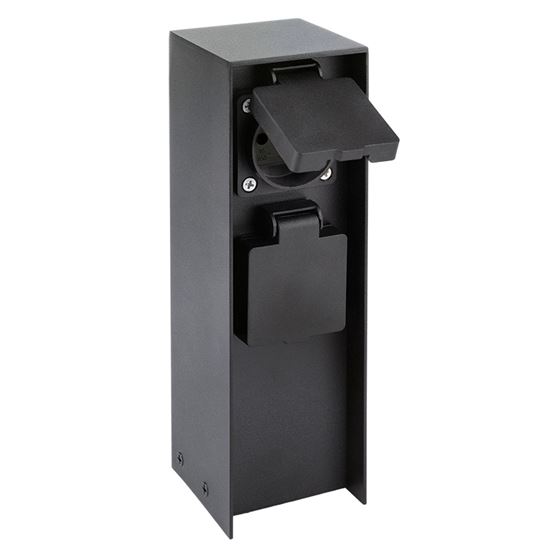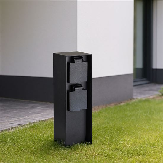 Dve zásuvky s detskými poistkami sú chránené samouzatvárateľnými krytkami, ktoré bránia vniknutiu vlhkosti a nečistôt. Vďaka krytiu IP44 je stĺpik vhodný aj na použitie za dažďa alebo vo vlhšom prostredí. Zásuvky zvládnu záťaž až 3680 W (16 A pri 230V~), čo je ideálne pre vonkajšie osvetlenie, záhradnú techniku aj bežné spotrebiče. Vhodný pre domy, pergoly aj firemné areály.