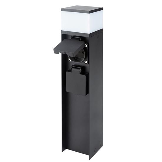 Odolný, bezpečný a spoľahlivý Dve zásuvky s detskými poistkami sú chránené samouzatvárateľnými krytkami, ktoré bránia vniknutiu vlhkosti a nečistôt. Vďaka krytiu IP44 je stĺpik vhodný aj na použitie za dažďa alebo vo vlhšom prostredí. Zásuvky zvládnu záťaž až 3680 W (16 A pri 230V~), čo je ideálne pre záhradnú techniku, grily alebo čerpadlá. Vhodný pre záhrady, pergoly, príjazdové cesty aj firemné areály.