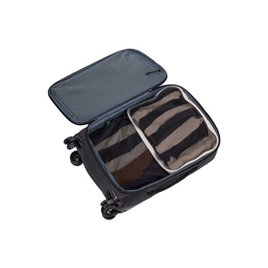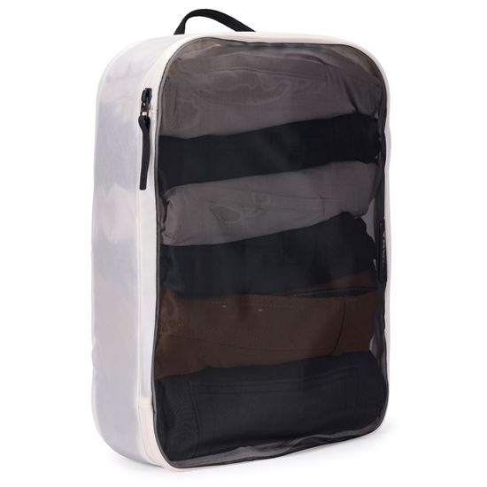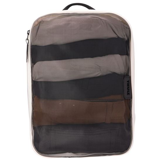 Stredný organizér Thule je presne tak veľký, aby sa zmestil do polovice štandardnej príručnej batožiny. Ideálny na uloženie nohavíc, košieľ a svetrov.