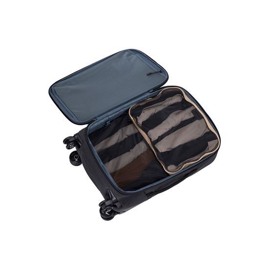 Stredný organizér Thule je presne tak veľký, aby sa zmestil do polovice štandardnej príručnej batožiny. Ideálny na uloženie nohavíc, košieľ a svetrov.